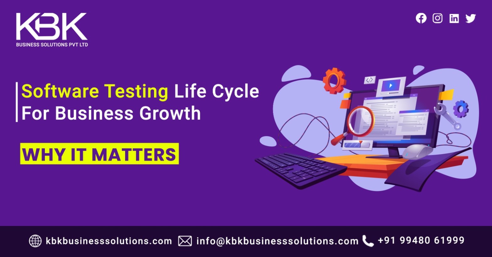 KBK Business Solution is one of the best testing companies in Hyderabad. Our skilled software developers are ready to help your app succeed. We can give you software quality assurance through our work. Contact us today to discuss your product and how we can assist with software testing.